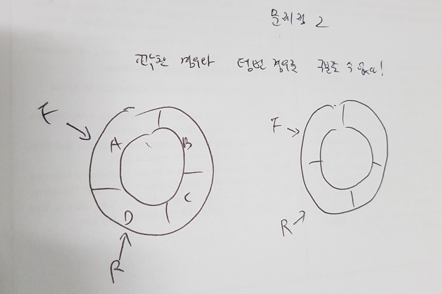 2)원형 큐가 꽉 찬 상태 = r이 가리키는 위치의 앞을 f가 가리킨다.
