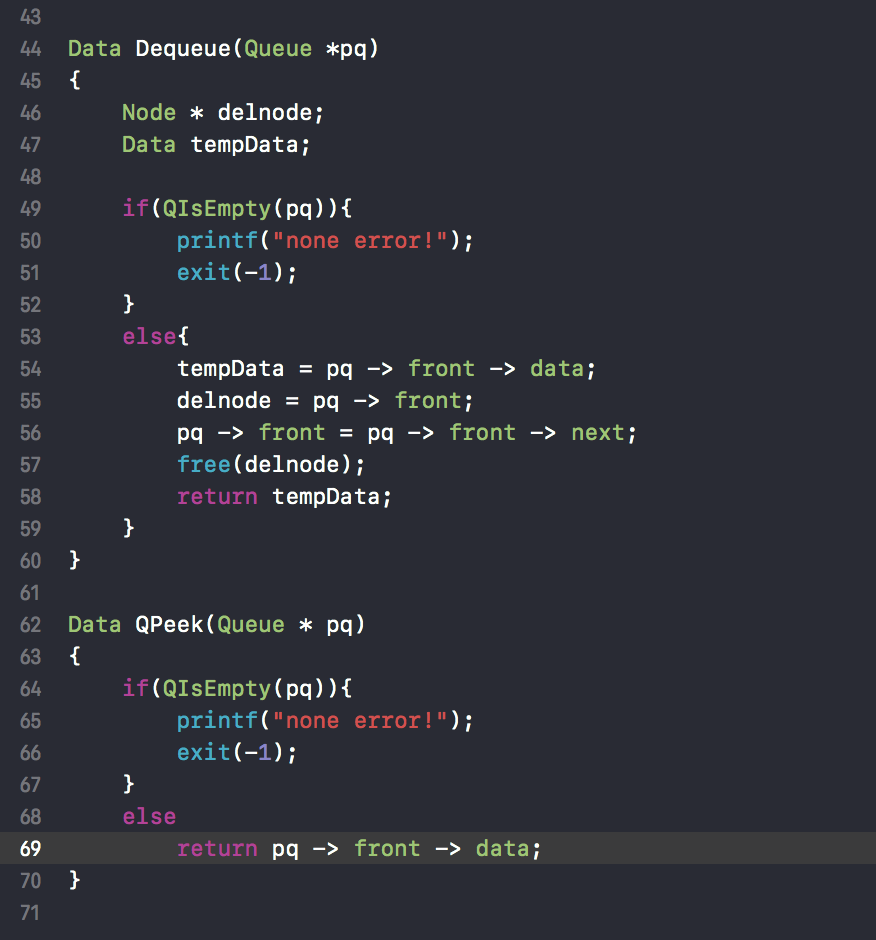 배열기반과 다르게 node구조체를 구현했고 Queue는 배열을 없애고 f,r 노드포인터로 노드들을 관리하기 시작했다.