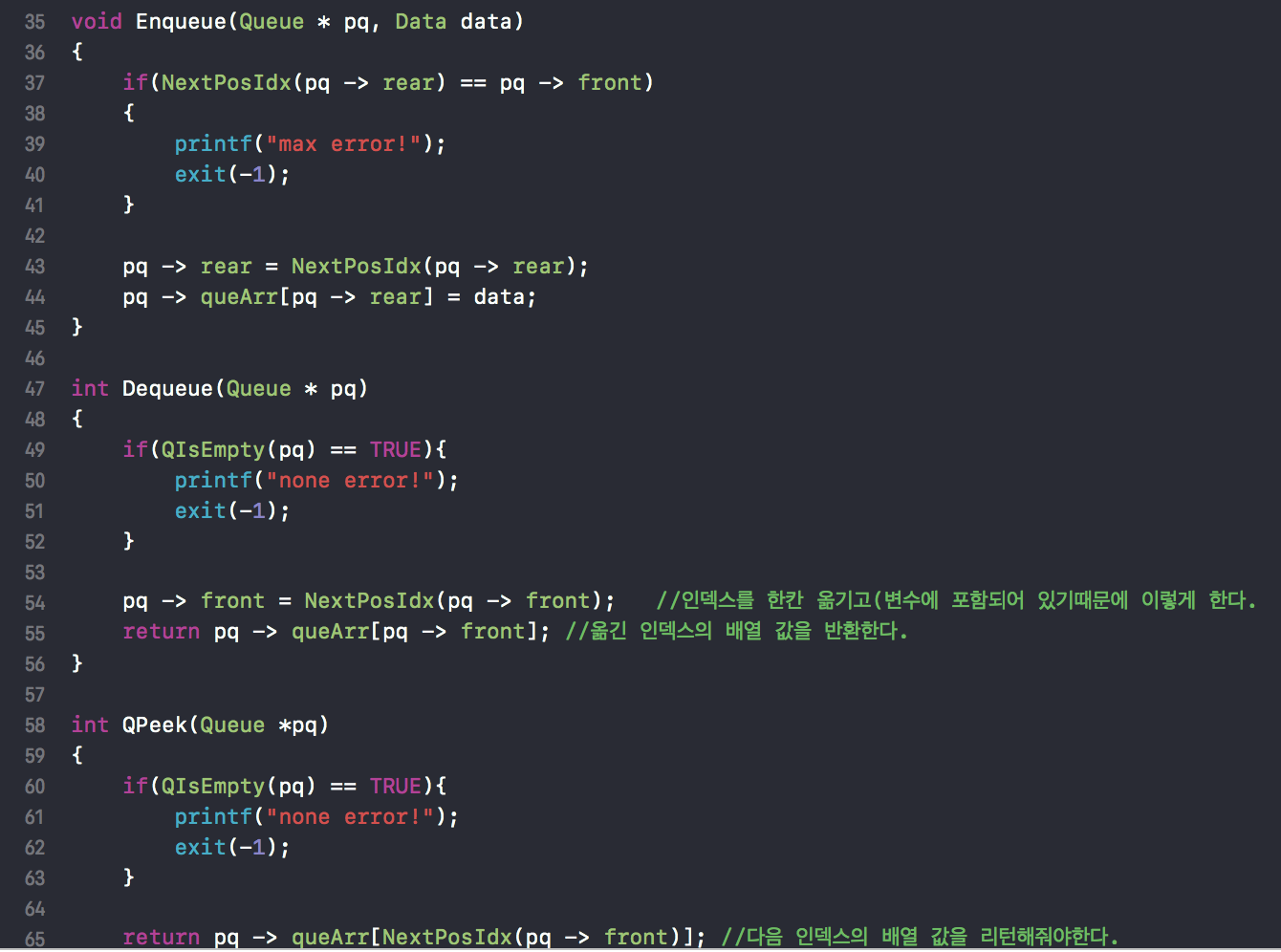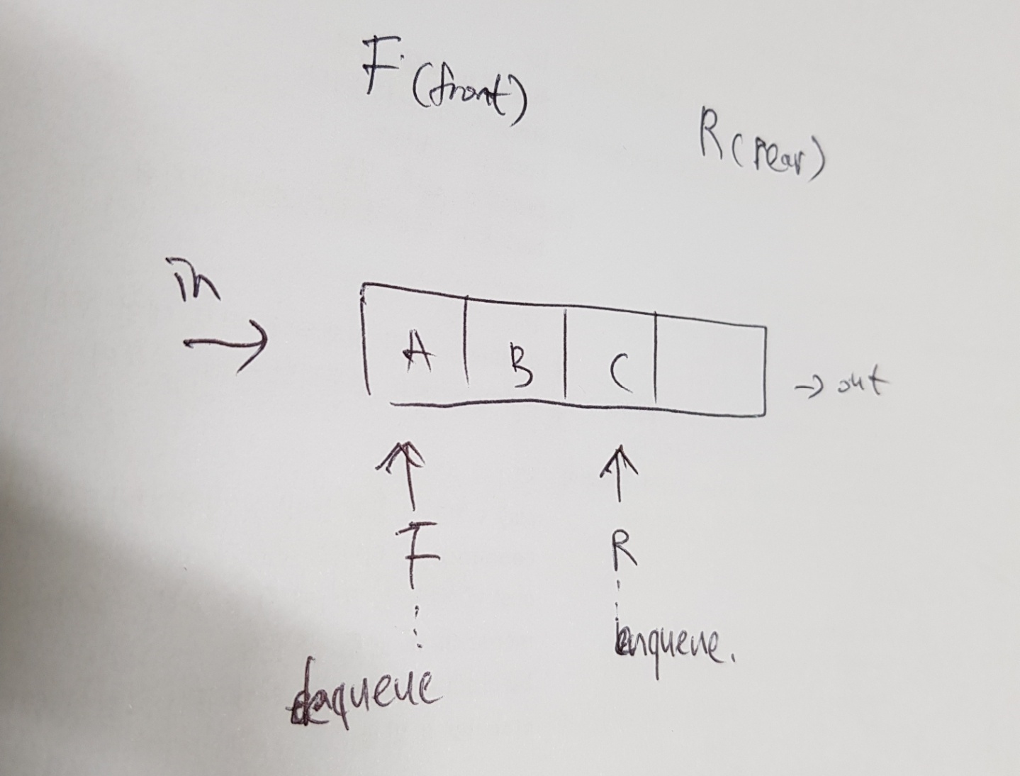 Enqueue를 사용하기 위해서 front변수 이용, dequeue를 사용하기 위해서 rear을 이용한다.