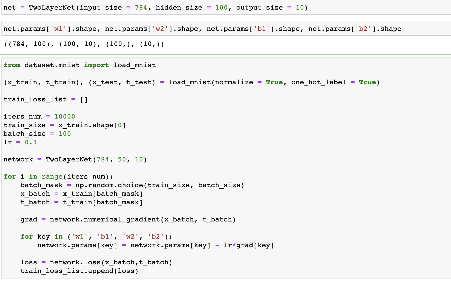 내가 원래 알고 있던 정보가 맞는게 코드의 network.numerical_gradient(x_batch, t_batch) 부분에 잘 나와있음!!