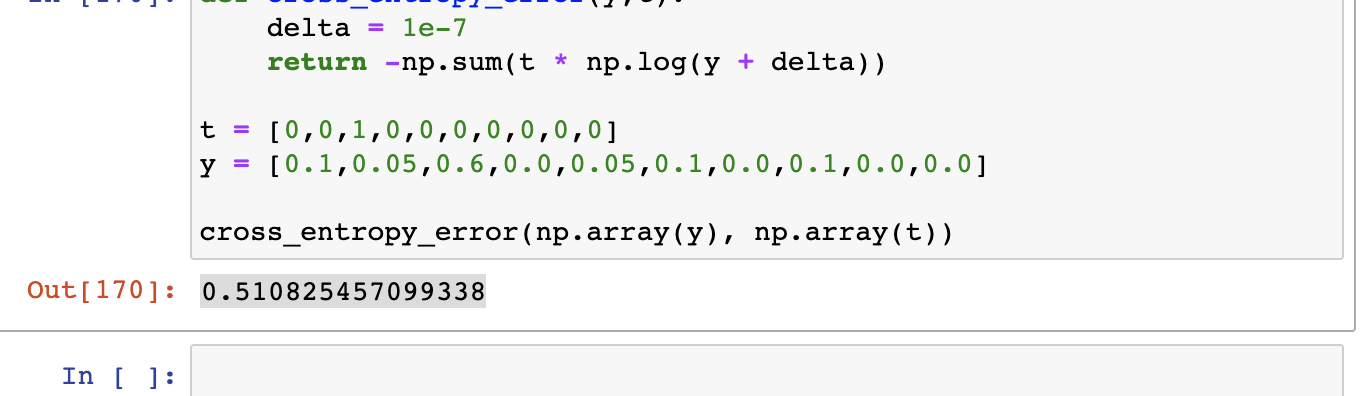 위의 sum of squares error과 숫자 차이는 있지만 틀린 답을 예측했을때를 비교해보면 정답일때 loss가 적어진다는 것은 같습니다.