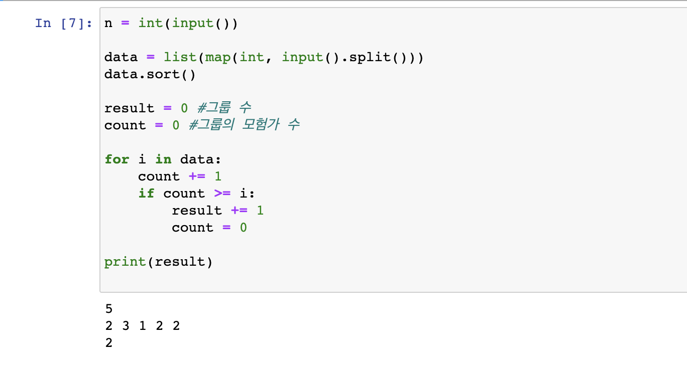 ## 최소한의 모험가 수만 구성하면 최대한 많은 그룹이 형성되겠구나!