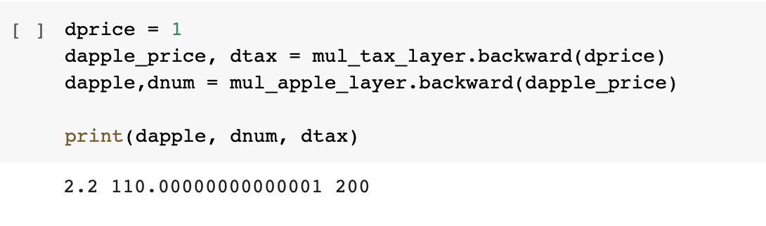 chain rule을 생각하면서 그래프를 그려보면 덧셈 노드의 역전파는 입력 값을 그대로 흘려보냅니다.