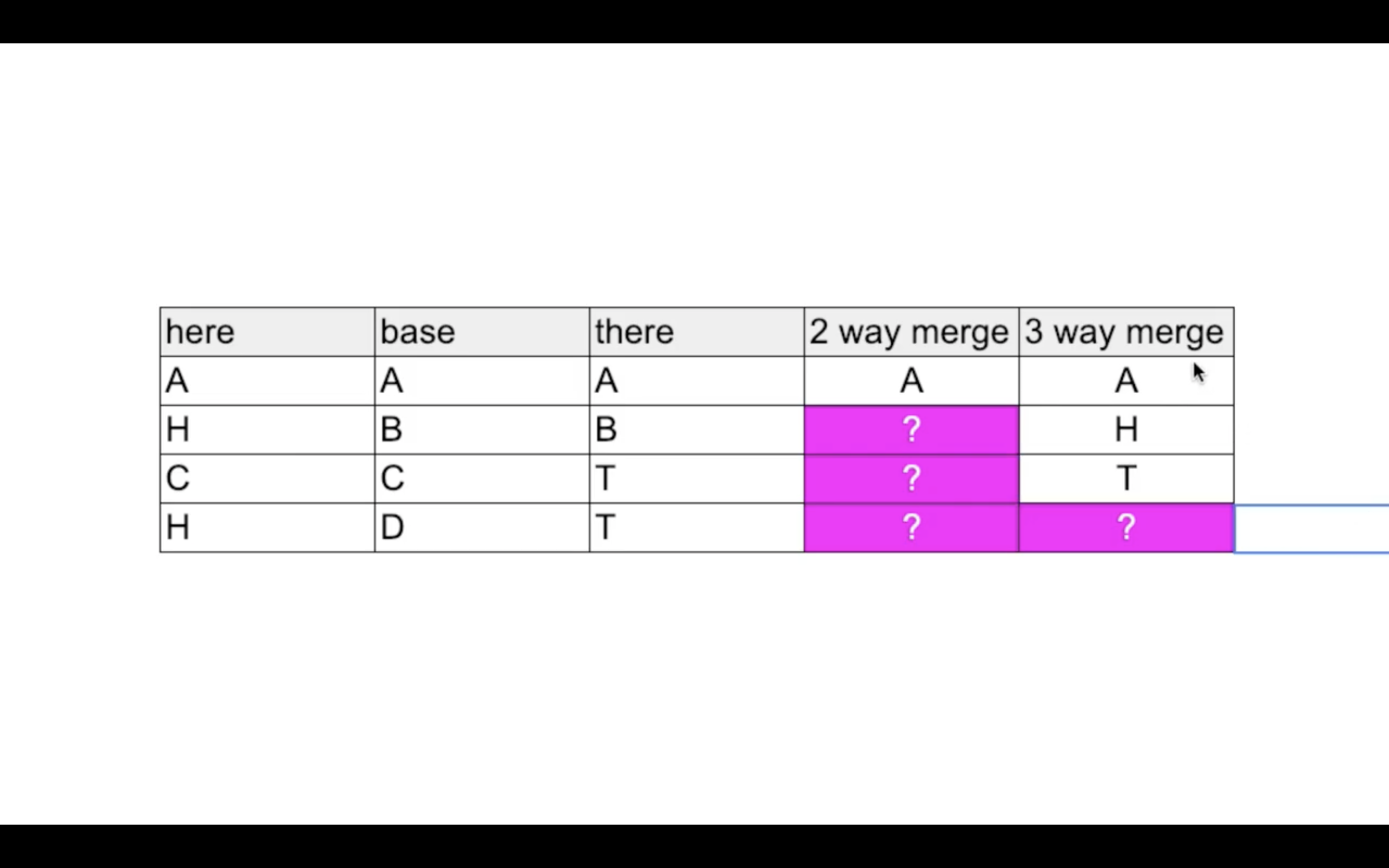 2) a.txt, a.txt 를 서로 다른 부분이 수정된 상태로 머지하면 서로 다른 부분이 채워져서 완전한 a.txt가 만들어진다.