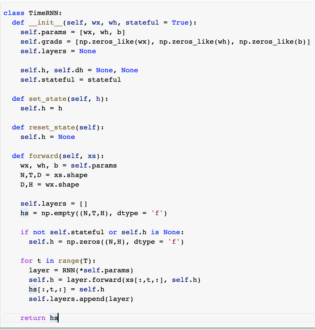 timeRNN을 사용하면 hidden state의 인계하는 작업을 하지 않아도 되는 장점이 생긴다. 왜냐면 timeRNN이 관리해주기 때문이다.