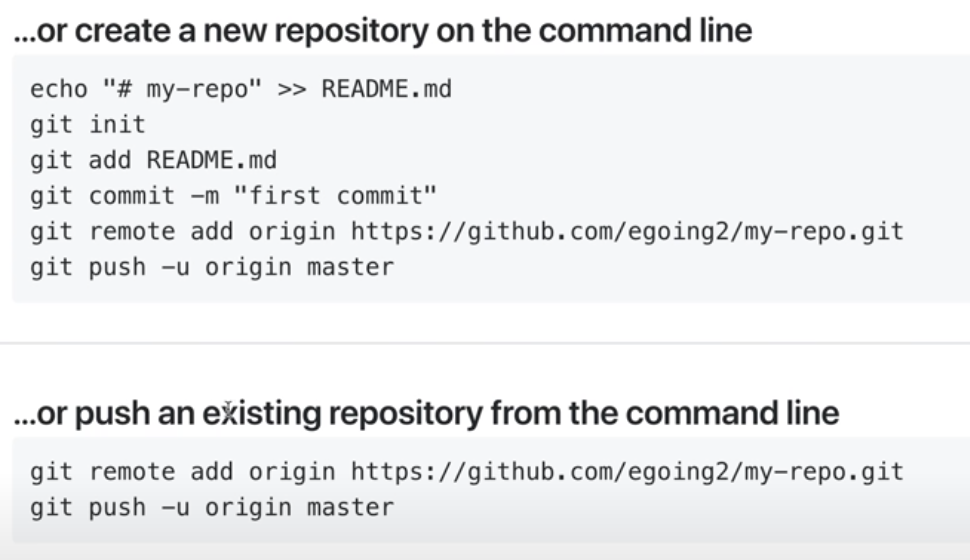 그러면 이처럼 로컬 레파지토리를 이미 만들었는지 혹은 새로운 레파지토리를 만드는지에 따라서 방법이 달라진다.