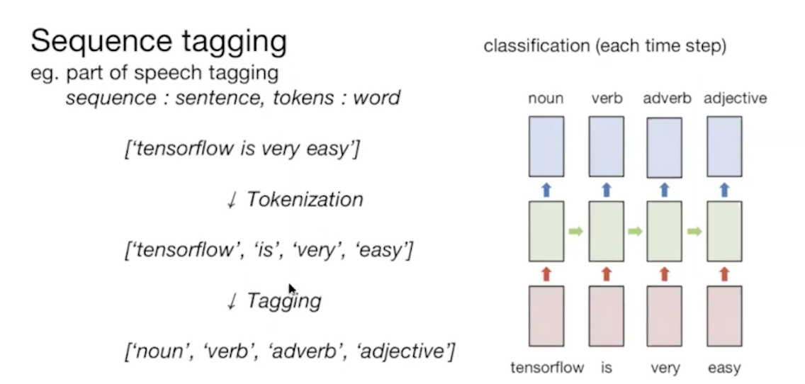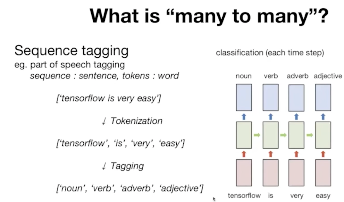 비디오 분류, 품사태깅, 개체명 인식 many to many