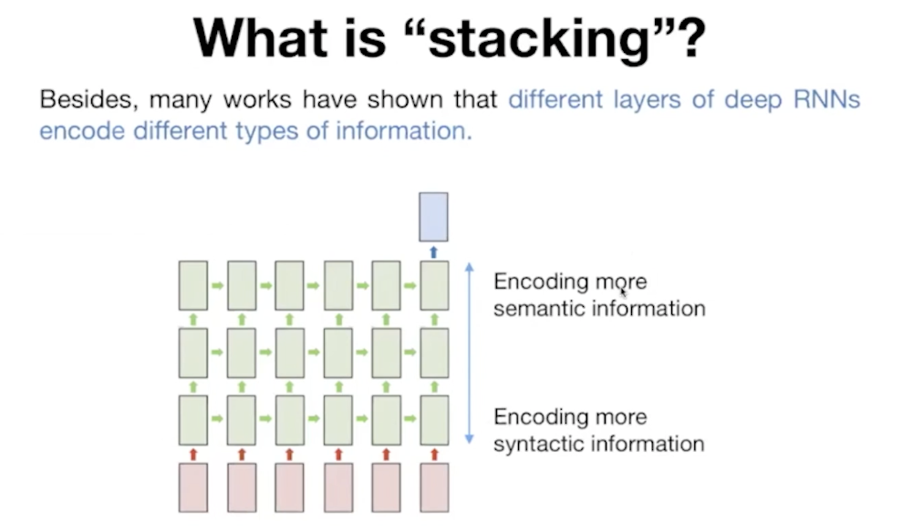 *성능을 개선하는 두가지 방법: stacking, bidirectional