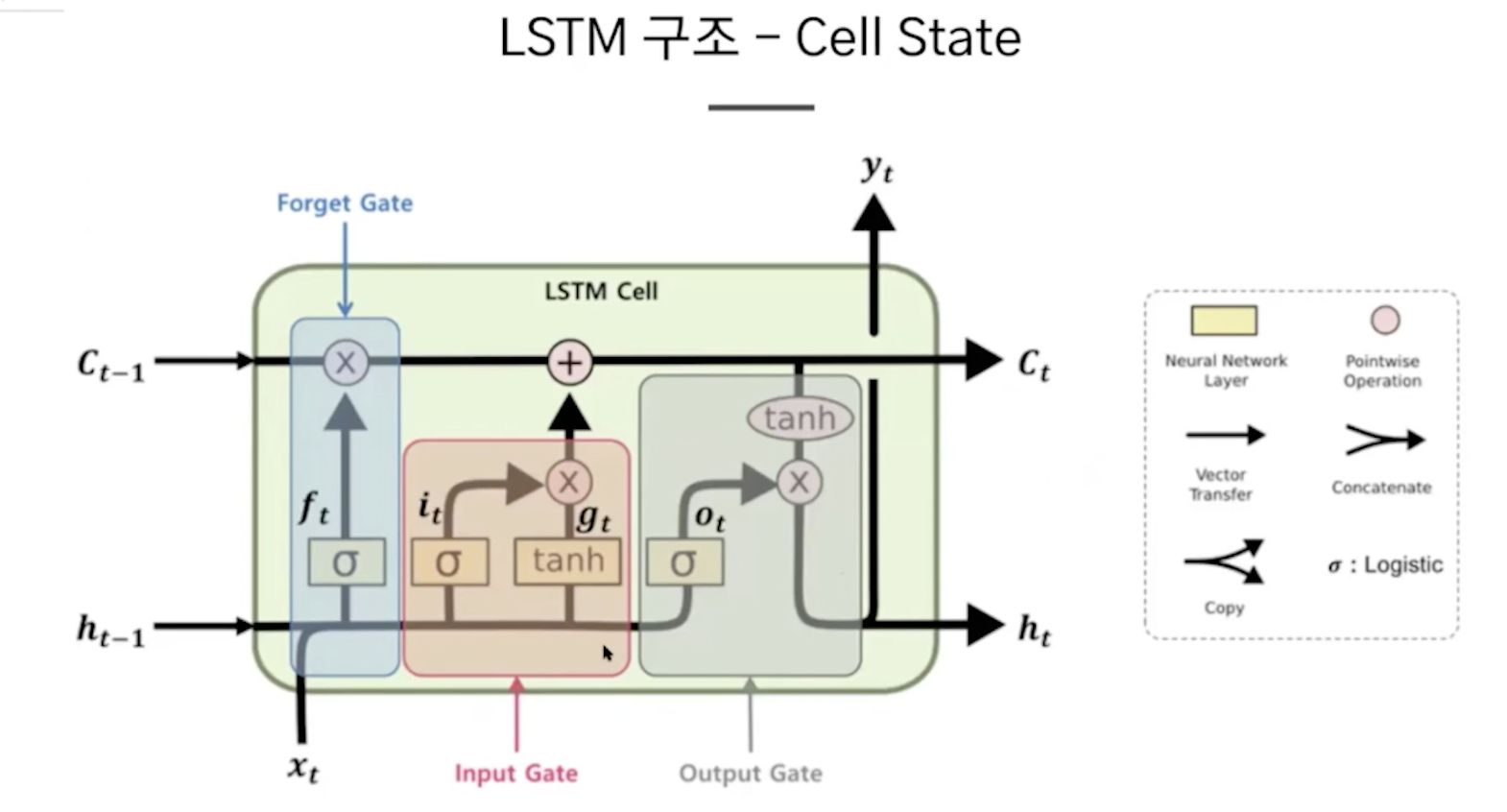 ***cell state: 전체 네트워크를 아우르는 장기 이전 정보