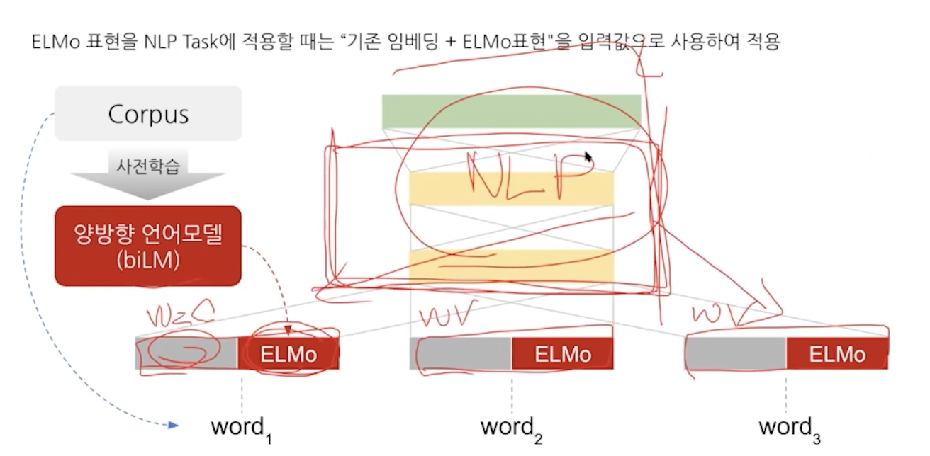 - elmo: 문맥에 따라 임베딩 -> 여러가지 벡터로 표현한다는 건가?