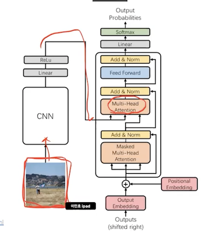 multi head attention에 인코더6의 내용이 들어온다.