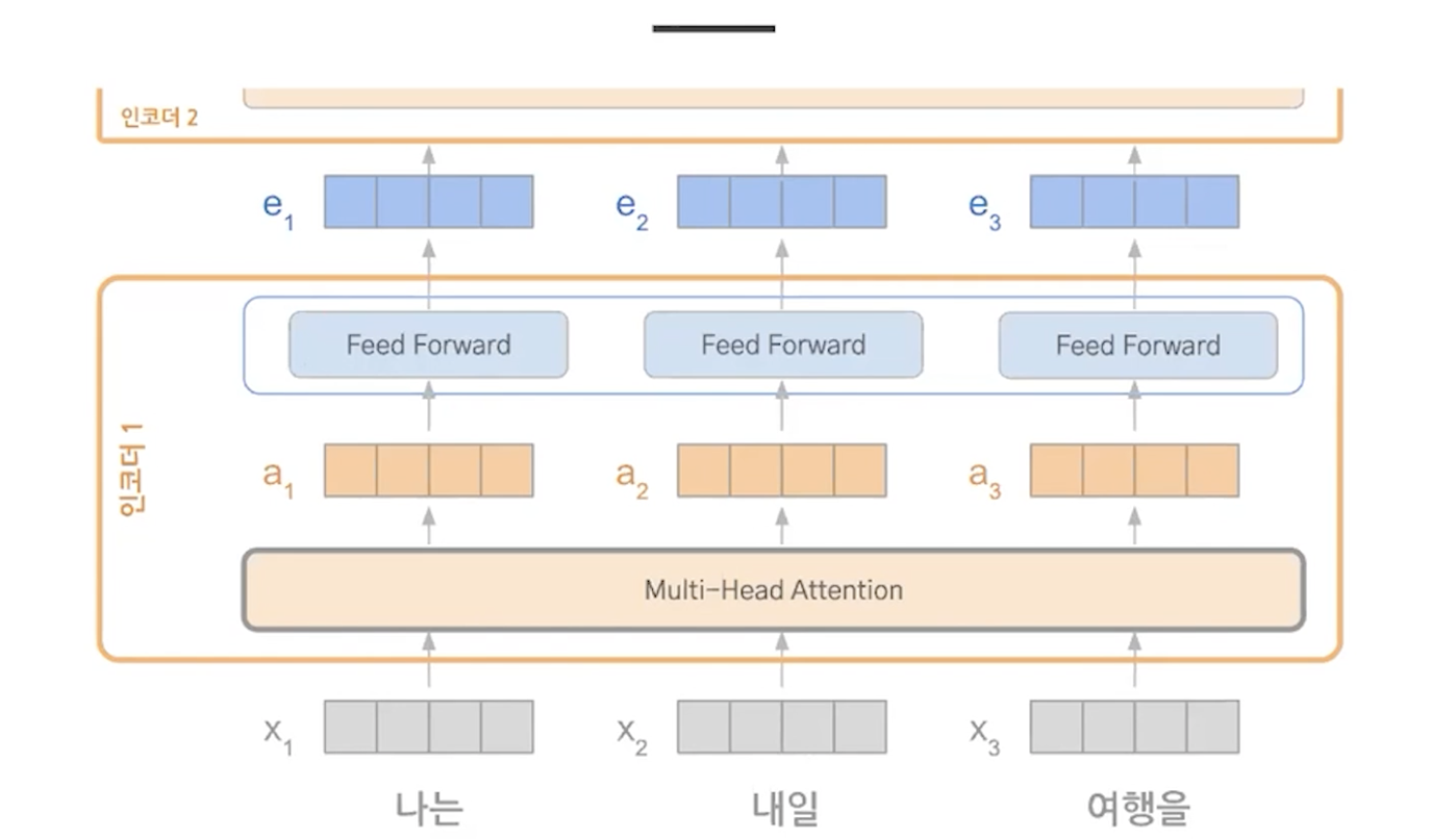 encoding에서도 attention을 한다. attention vector를 feed forward를 통해서 학습을 한다.